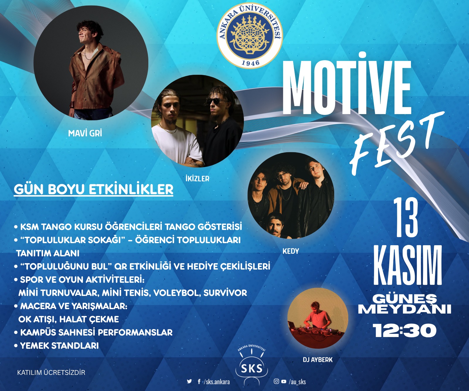Milletimizi derinden üzen Gürcistan- Azerbaycan kargo uçağı kazasında şehit olan kahraman personelimizin acısını yürekten paylaşıyoruz. Bu elim olay nedeniyle 13 Kasım 2025 tarihinde Güneş Meydanında gerçekleştirilmesi planlanan Motive Fest etkinliği ileri bir tarihe ertelenmiştir.