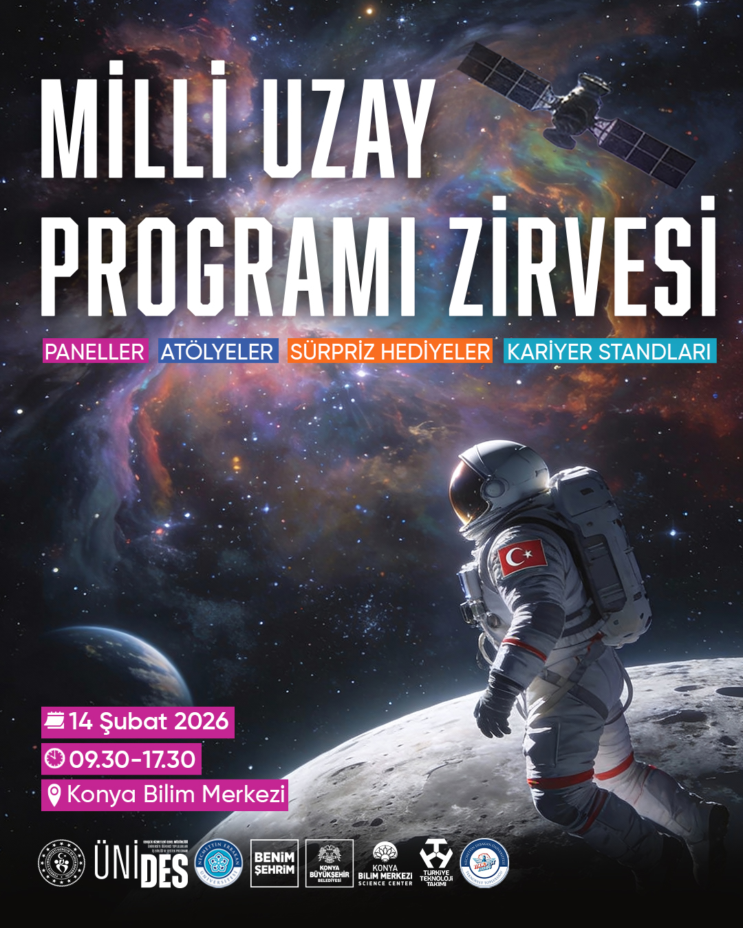 14 Şubat 2026 tarihinde Konya Bilim Merkezi’nde düzenlenecek zirvede; uzay fırlatma sistemlerinden uydu teknolojilerine kadar birçok panel ve etkinlik gerçekleşecektir.